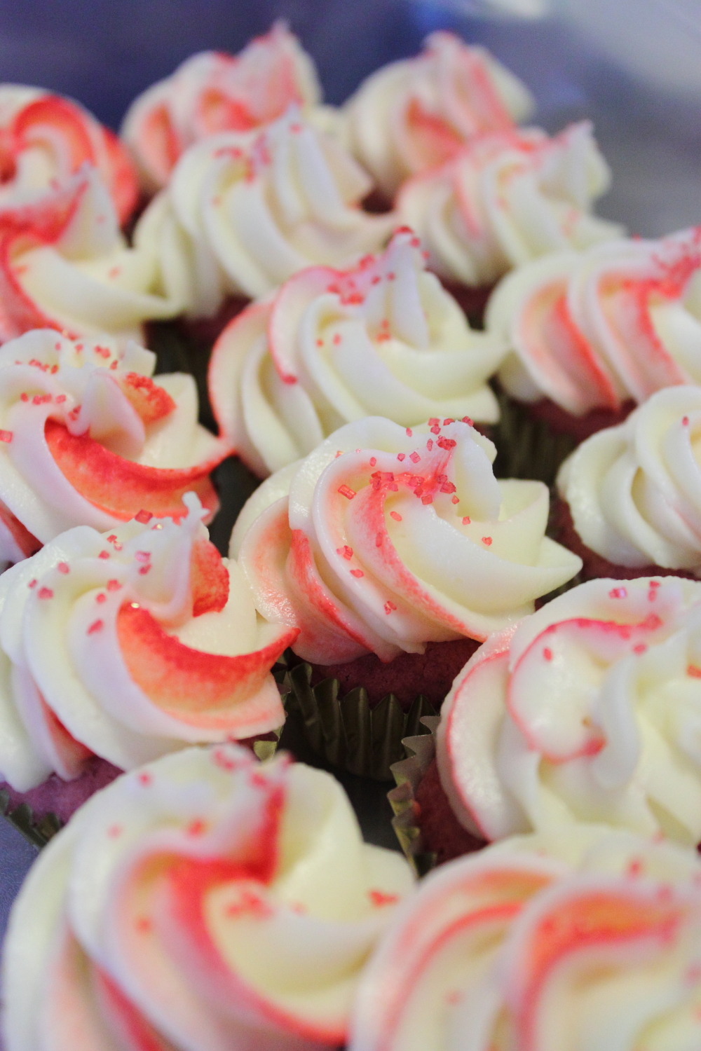 For this batter, I don’t think I used enough red food colouring.  Usually the recipe calls for lots of it but I used a gel instead of the drops and didn’t know the conversion.  I’ve also used different colours to make different coloured cupcakes!!  My favourite was blue velvet cupcakes.