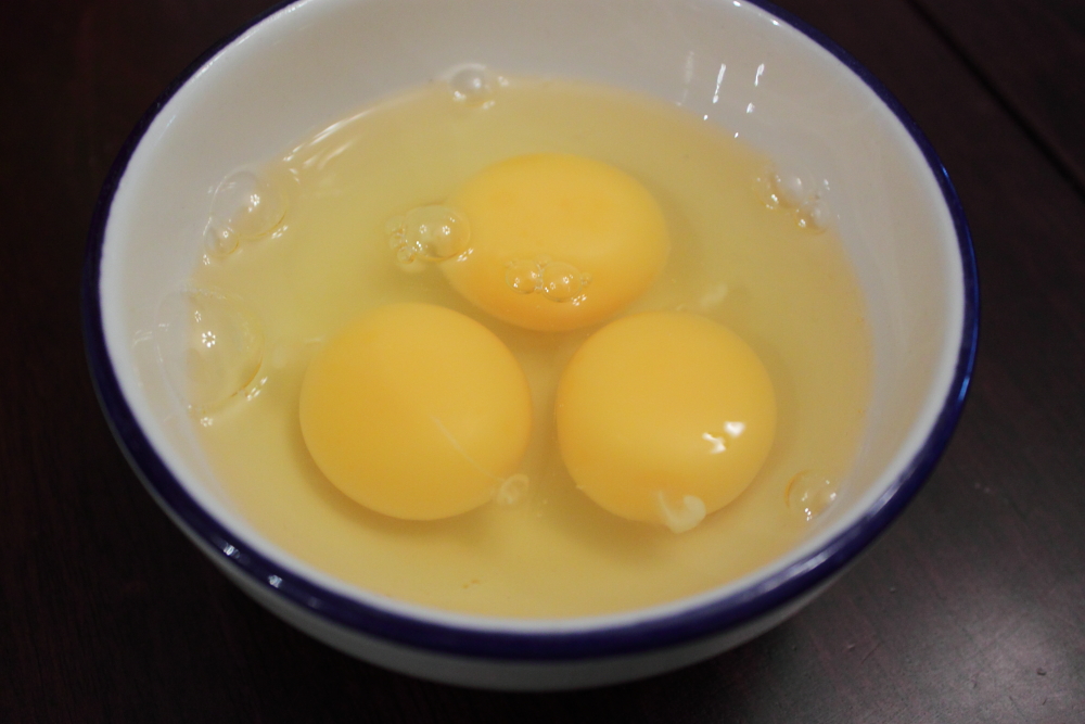 In the yeast mixture, mix in the eggs. Remember to prevent egg shells in the dough, crack the eggs in a bowl before you mix it in.