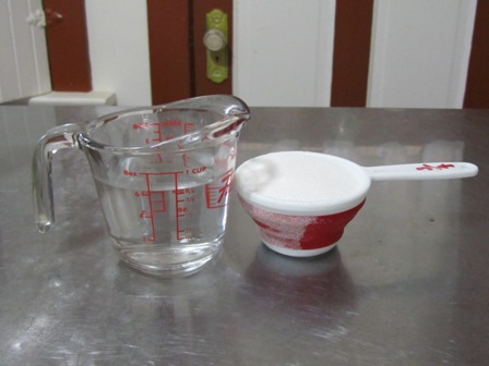 Combine in a sauce pan. Heat until the sugar has dissolved. Set aside to cool.