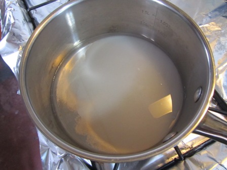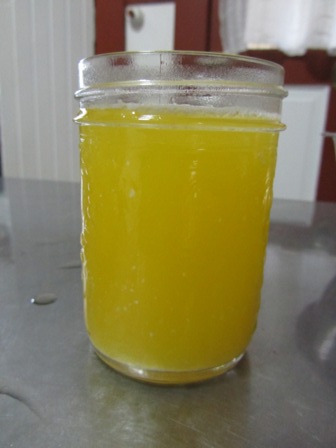 You can see all the milk solids that are left behind. If you were making Ghee, you would heat the butter longer and the milk solids will brown. It gives the butter a nice nutty flavor.