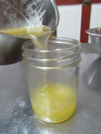 Allow the melted butter to sit and milk solids settle. Carefully pour into a heatproof dish.