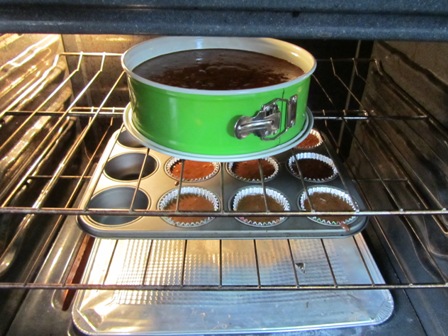 Scrape the batter into greased pans and bake for about 30 minutes. The cake should start pulling away from the side