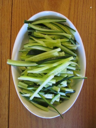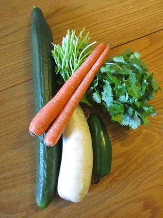 Cut up some cucumber and leave raw. The combination of fresh cucumber and pickled vegetables is amazing. The cucumber adds a fresh crunch.
