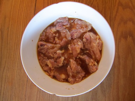 Mix all ingredients in a bowl. Marinade meat for at least one hour or overnight. Remove the meat from the marinade and grill or BBQ. Slice cooked meat into bite sized pieces.