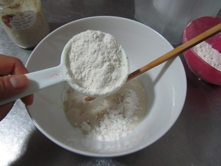 Add 1/4 cup water and 1/4 white flour.