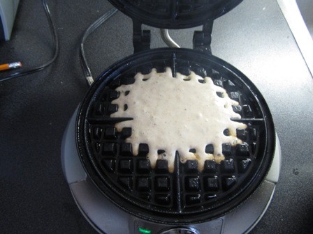 The first time I made these waffles I didn’t grease my waffle iron. They stuck to the machine and it was a pain to clean. This time I used Pam butter flavored spray. Be generous with the spray. Preheat the waffle iron to medium high. I used 4-5 on my waffle maker.