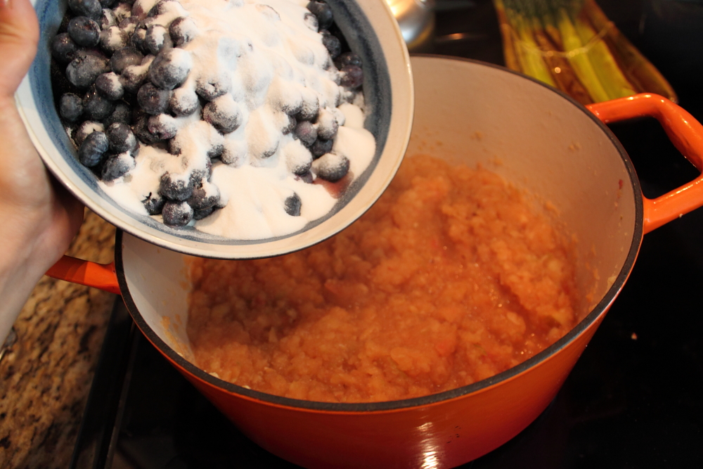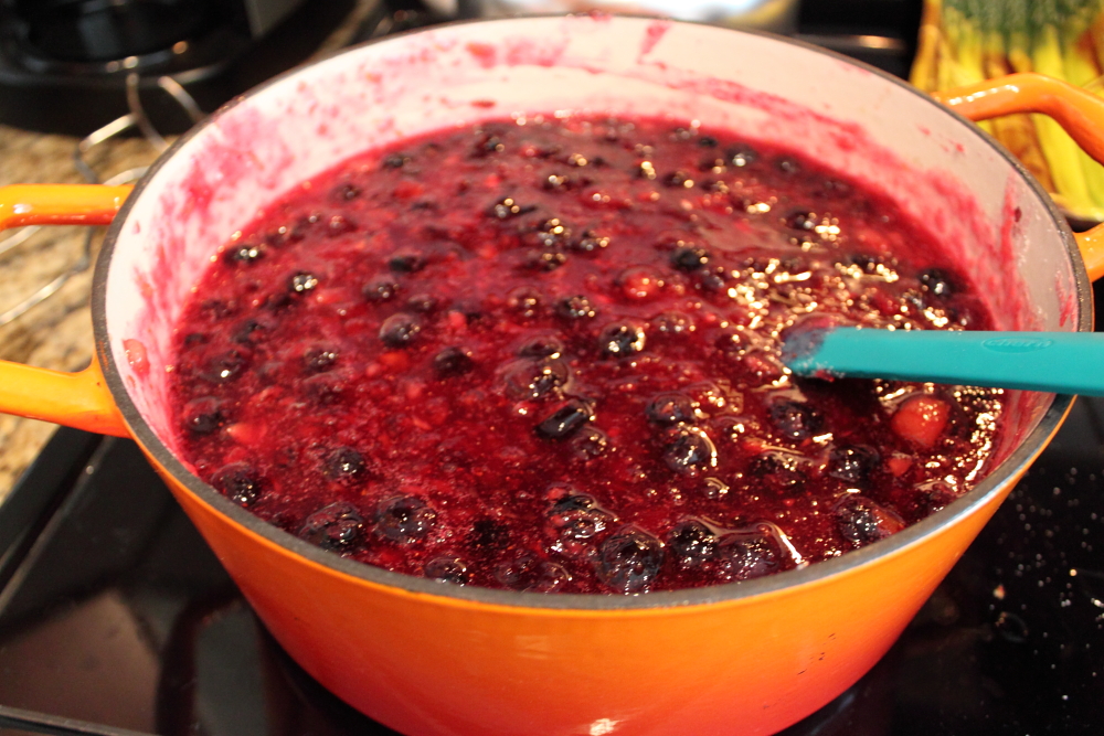 (I read the recipe too quickly so I didn’t crush the blueberries before adding it to the pot. Oops!)