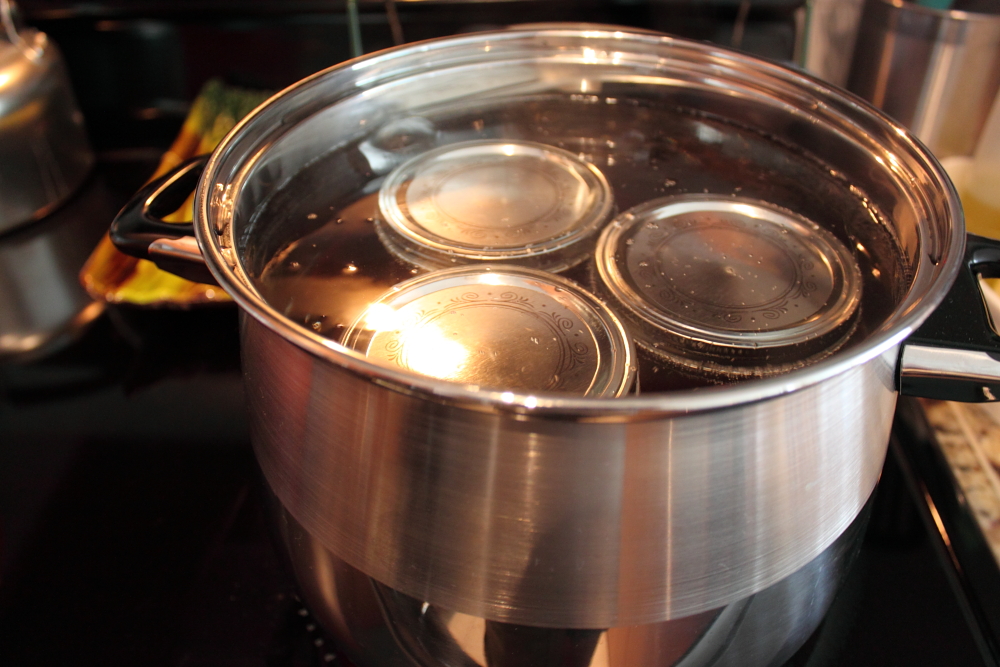 Fill the jars until you almost reach the top. You a want to leave a bit of space to create a vacuum which helps to seal the lid to jar.