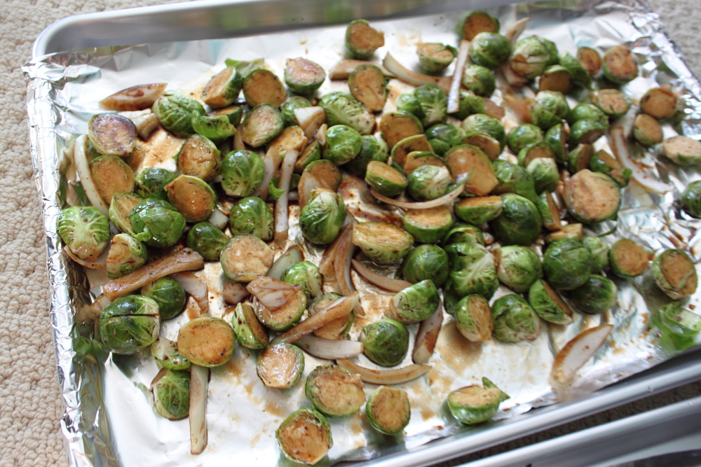 Spread the mixture over an aluminum lined baking tray and place in a 400 degree F oven. Baking the sprouts give it a nice roasted taste and brings the flavour of the balsamic out. You need a hot oven to create the perfect condition for the Maillard reaction that helps with the browning of various types of food. It make the brussel sprouts delicious!!