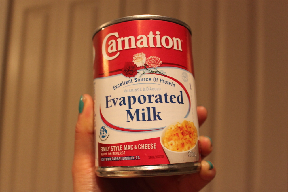 To make the pudding extra rich, use evaporated milk and whipping cream! Pour a can of evaporated milk into a measuring cup. Top off the evaporated milk with regular milk till you get 3 cups of liquid.