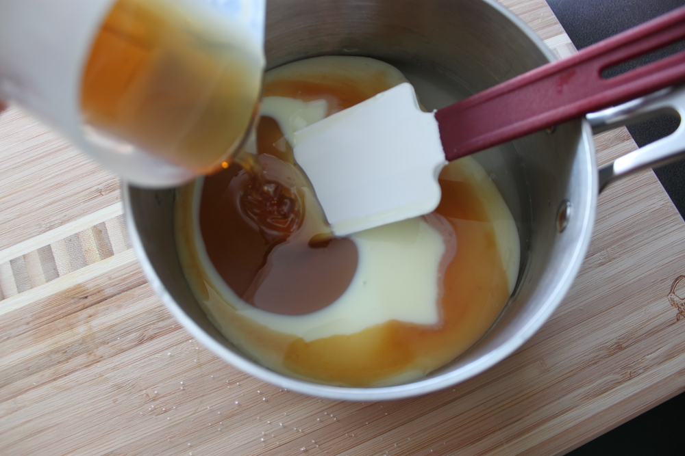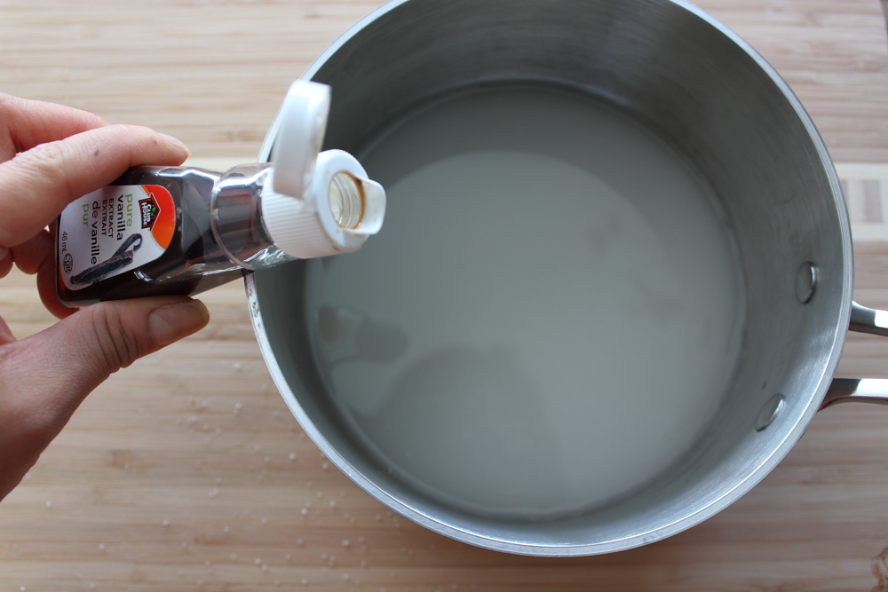 1. Combine the water, sugar, vanilla bean seeds and pod, condensed milk, corn syrup and butter in a heavy-bottomed medium saucepan and bring to a boil, stirring constantly. Ensure you cook this over medium heat.
