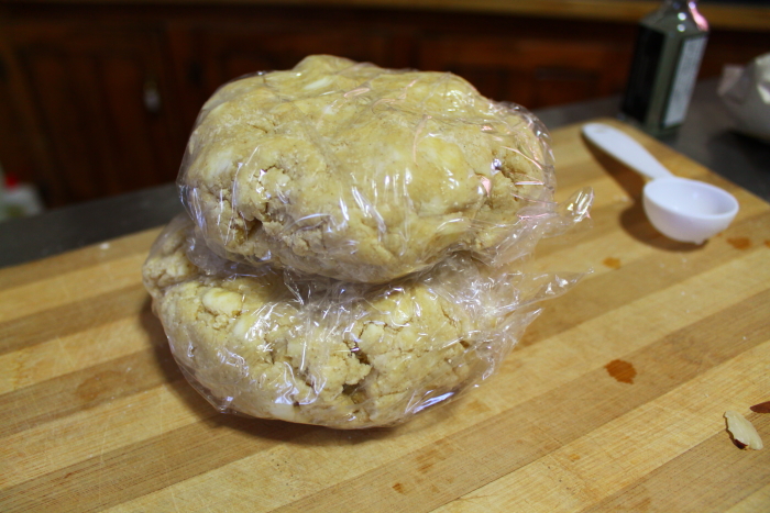 Prepare the dough by pressing into pie pans or rolling out on a floured board.