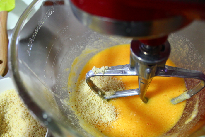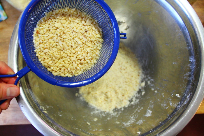 While the dough is chilling, prepare the filling. Grind up almonds with a food processor. You want to get it as fine as you can. Careful not to blend it too much as you will end up with almond butter.