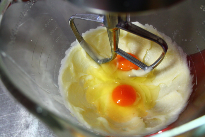 In a mixer, soften butter, add sugar and cream. Add eggs, almond extract and the ground almonds.