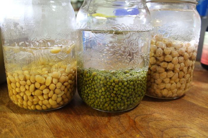 sprouted mung beans, chickpeas,
