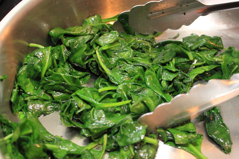Saute the spinach and mushrooms in olive oil and season with salt and pepper to taste. Don’t over cook the spinach!! Just cook it until its slightly wilted.
