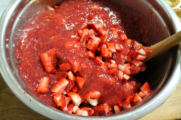 Allow the mixture to cool. When cooled, stir in the remaining cut strawberries. You have now completed the filling for the pies. If you have any leftovers, it is great on toast!