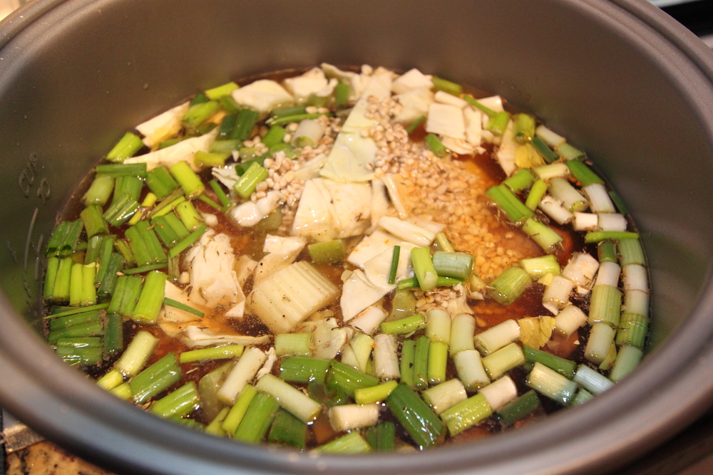 Having just discovered that my rice cooker was also a slow cooker, I decided to experiment. My favourite soup is beef barley but it does take a lot of time if it is made from scratch. The meat needs to be boiled down to make it tender and the barley needs to cook till its soft. Using a slow cooker reduces the risk of having your soup boil down to nothing and also there is less of a likely chance that things would burn. A slow cooker makes this soup easy!!