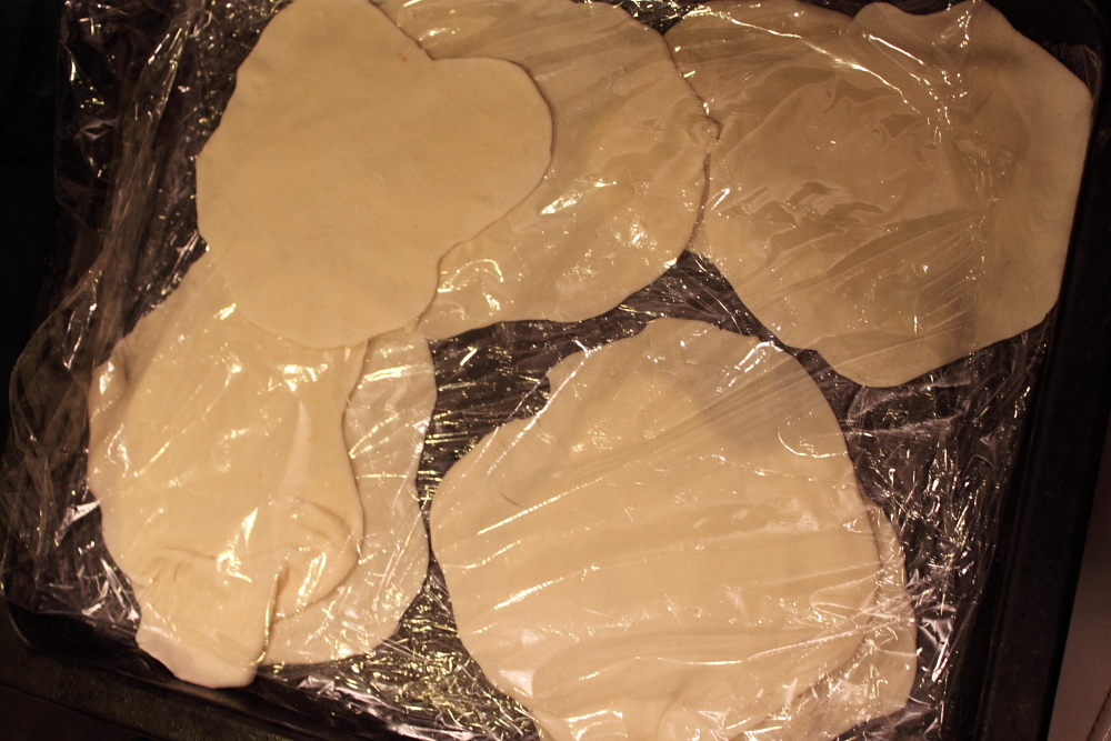 While the filling is being made, have someone else make the dough. (This works wonders when there are a lot of friends willing to try out new recipes!!). The dough is easy and simple.