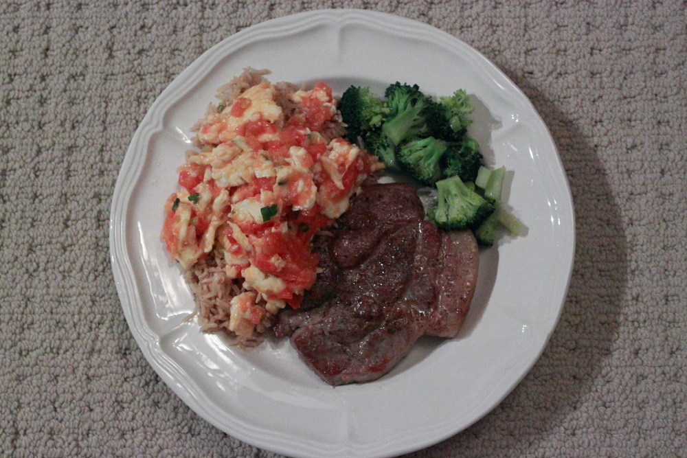 Tomato and egg make a great side dish. I paired mine with broiled broccoli, pork belly and some basmati rice. Give this a try and add it to your next meal!