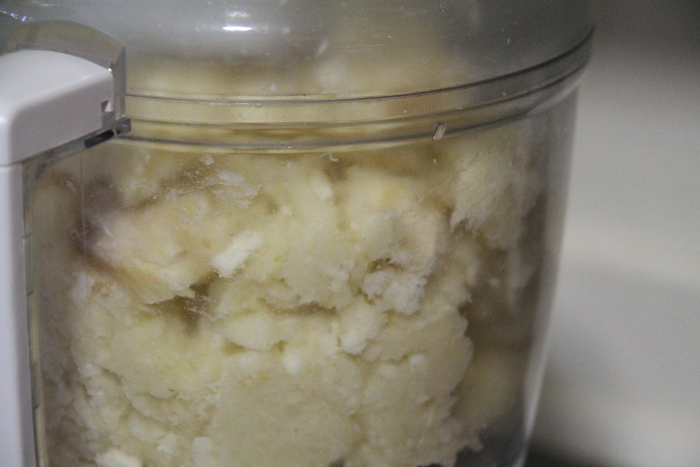Place the cooked root into the food processor and blend well. I found that when you add water to the mixture it makes it super sticky and gooey. So try to blend it in small amounts.