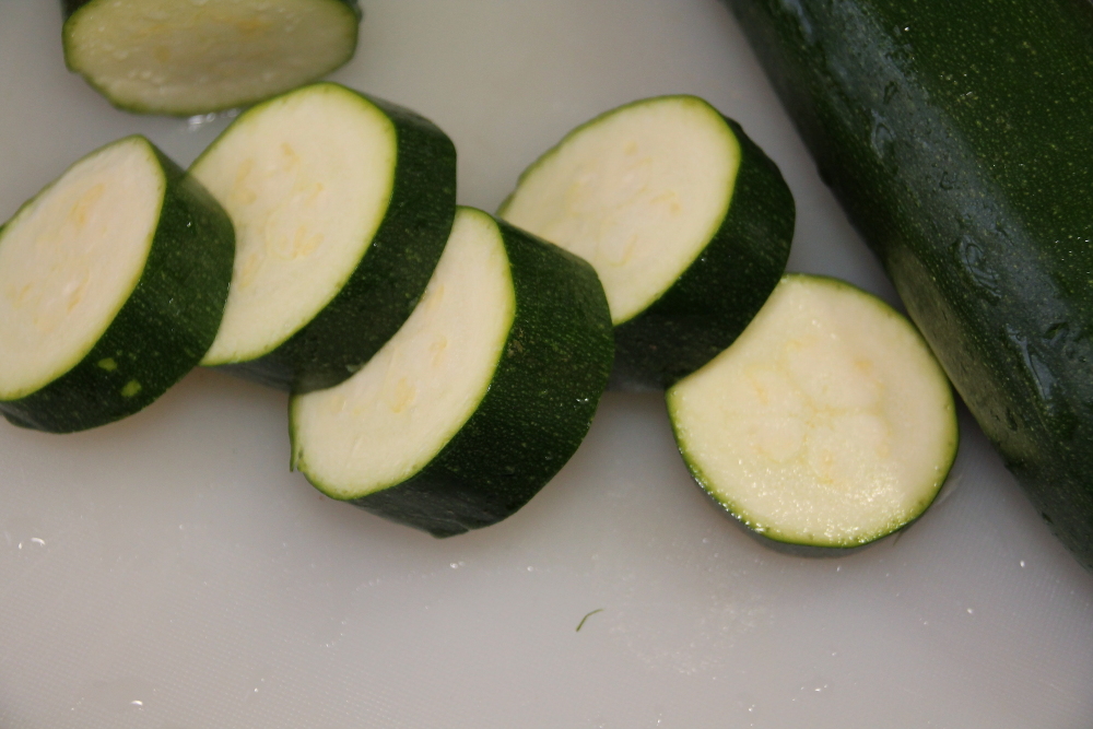Start by cutting up the zucchini into large chunks. The recipe asks to peel it but I didn’t so it made my cheese quite green.