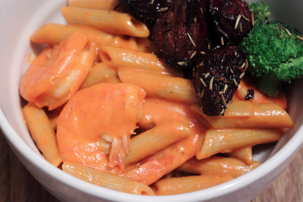For the last 2 weeks, I’ve eliminated dairy from my diet to see if my allergies improved. For those 2 weeks, I’ve missed milk in my coffee, cheese on my toast and cheesecake. *sigh* Oh well! There are still lots of delicious foods that don’t involve dairy. Here is a creamy red pepper pasta that tastes delicious and sure to end your dairy woes!