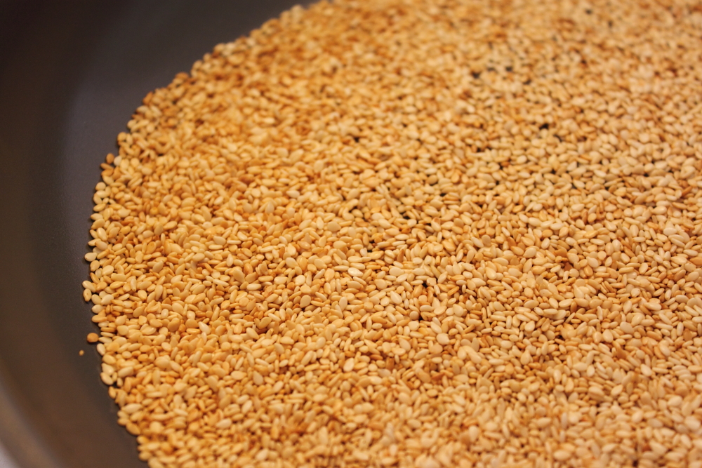 You know when the sesame seeds are ready when they emit a wonderful aromatic smell and have a golden brown colour!