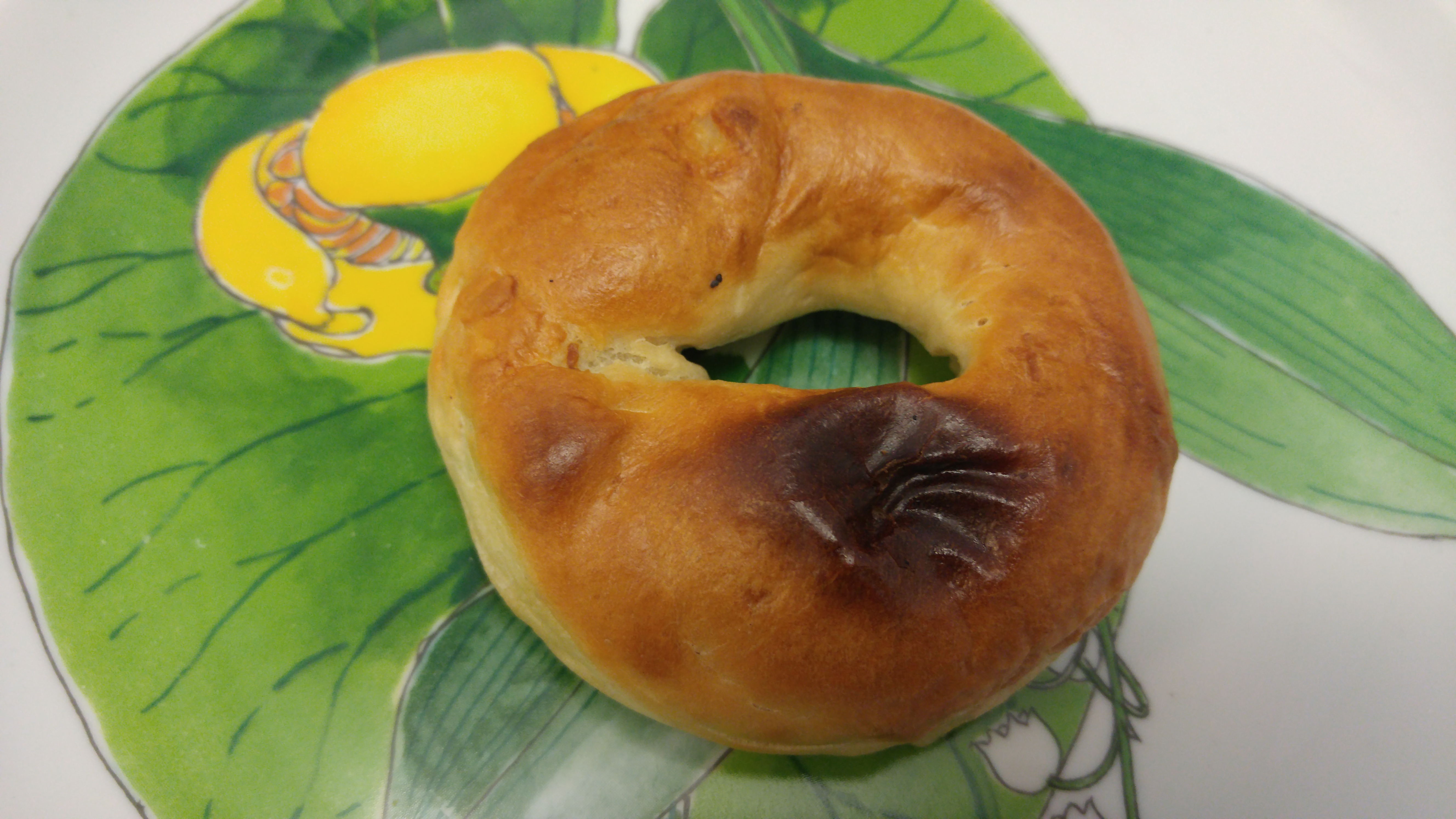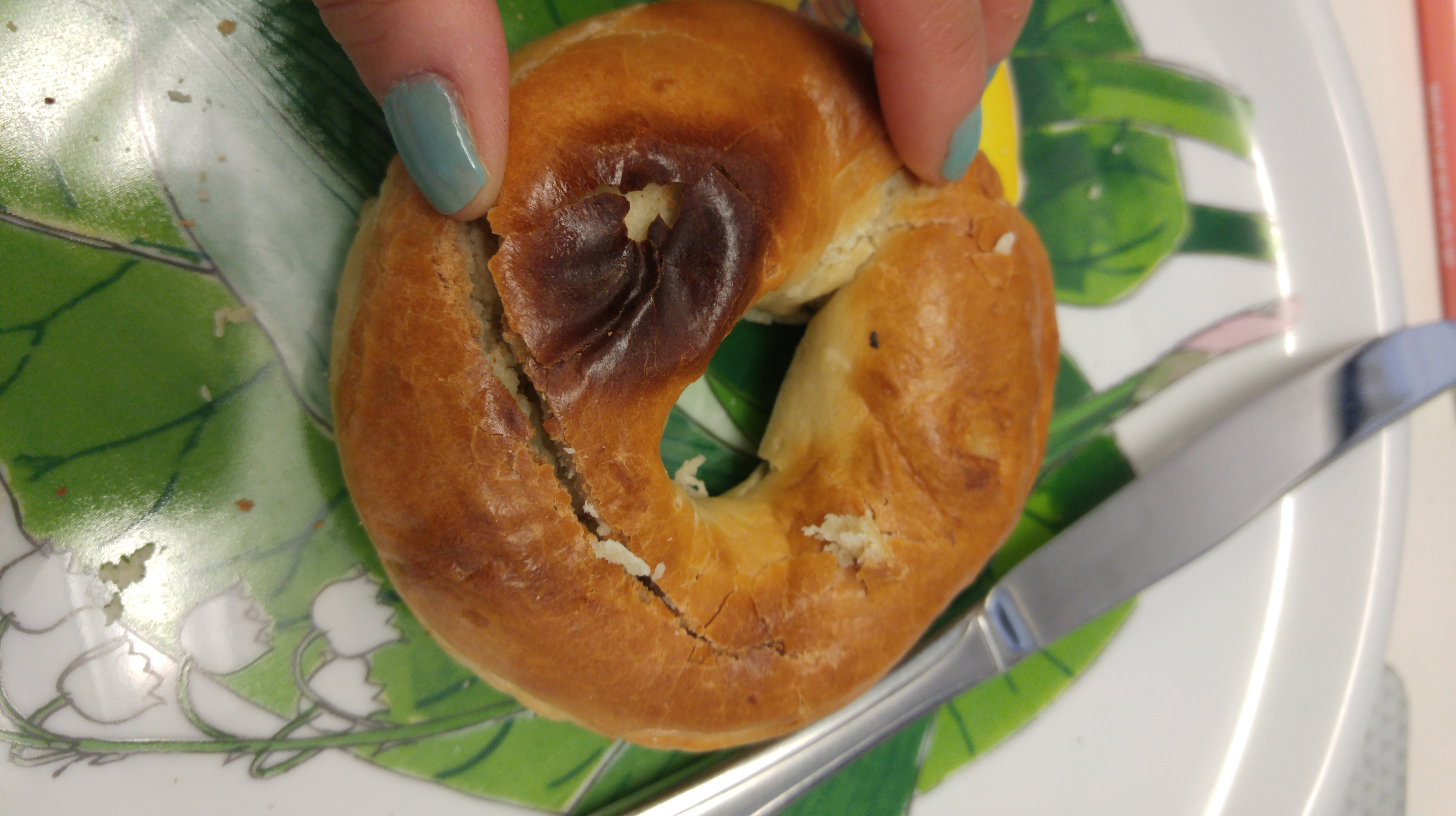I ate the bagel but I had an urge to get it right so that I could post up my success on this blog. I took another bagel to try again at my desk.