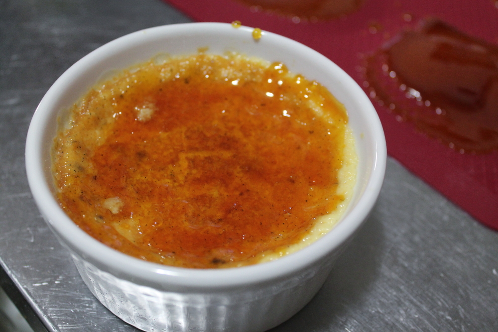 A couple weeks ago, I posted a review on Nordstrom Cafe. When I was there I ordered creme brulee. It was yum. I decided it was my turn to make this favorite dish. One reason I don’t make this dish often is that I hate using a torch. I improvised in this version. You will see later.