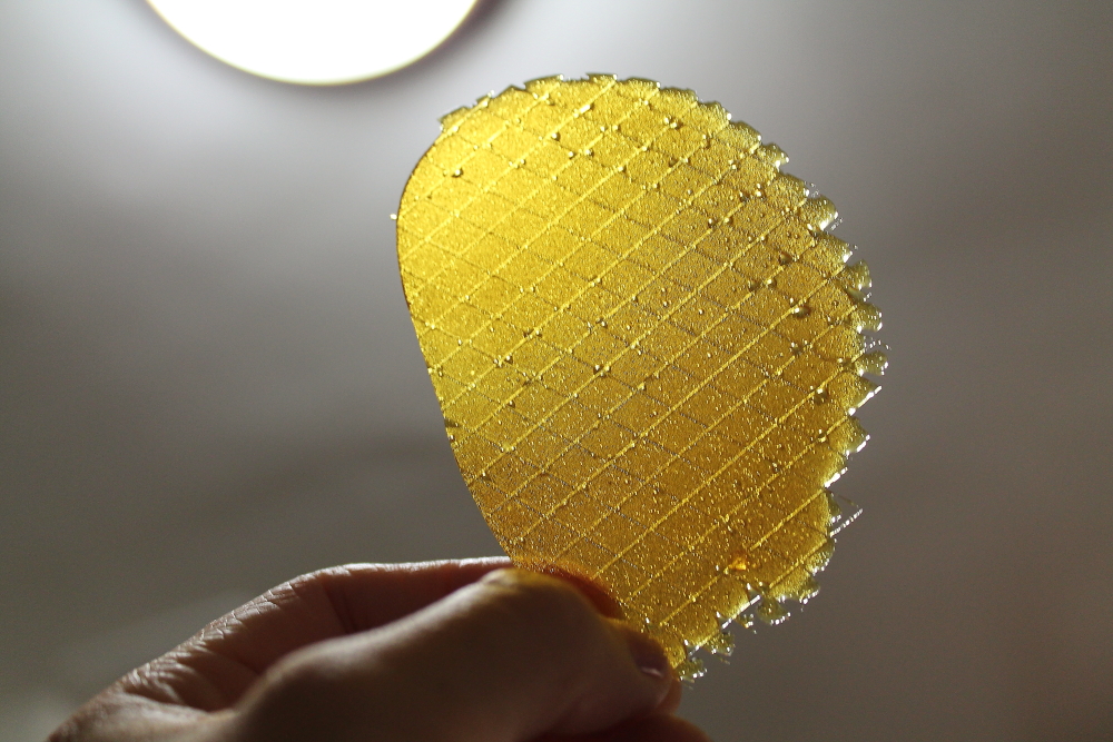 For the majority of the sugar, I poured them on the silicone sheets in small disks. I allowed them to cool. Actually I placed them in the freezer, but that was a bad idea since it made it really brittle and hard to peel of the sheets. Carefully with a flat spatula remove the sugar from the sheets. This was the hardest part and a few of them did break. But the results were pretty cool.