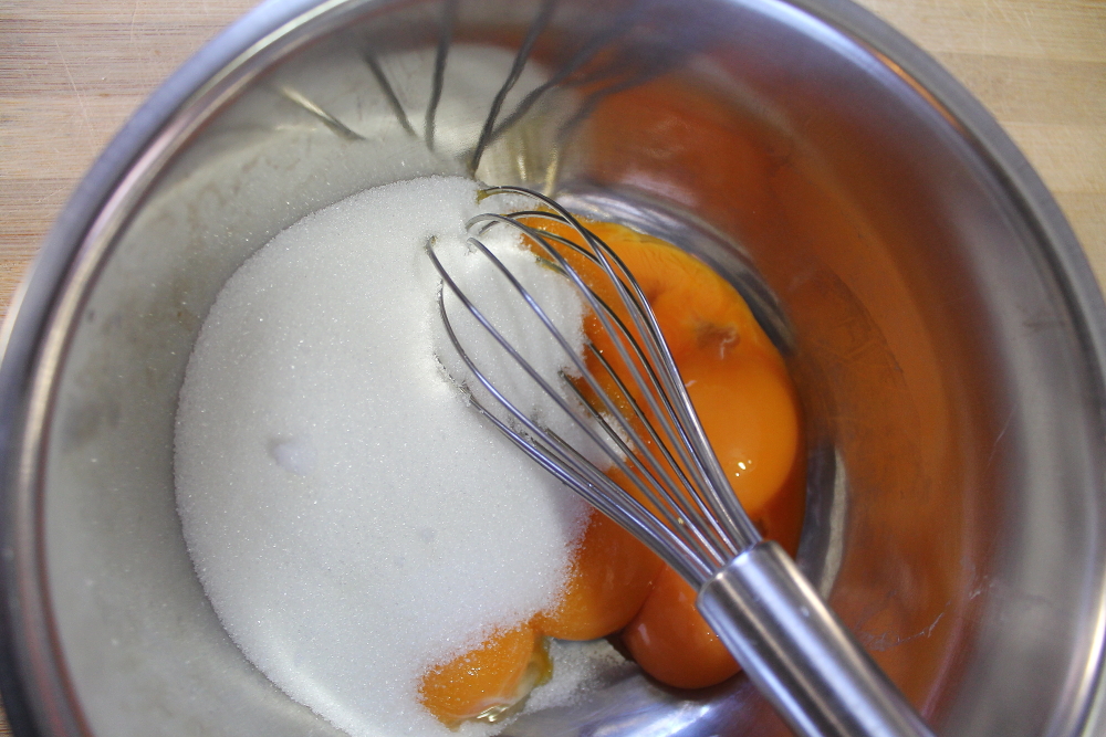 Meanwhile, mix the egg yolks and sugar in a bowl until light yellow.