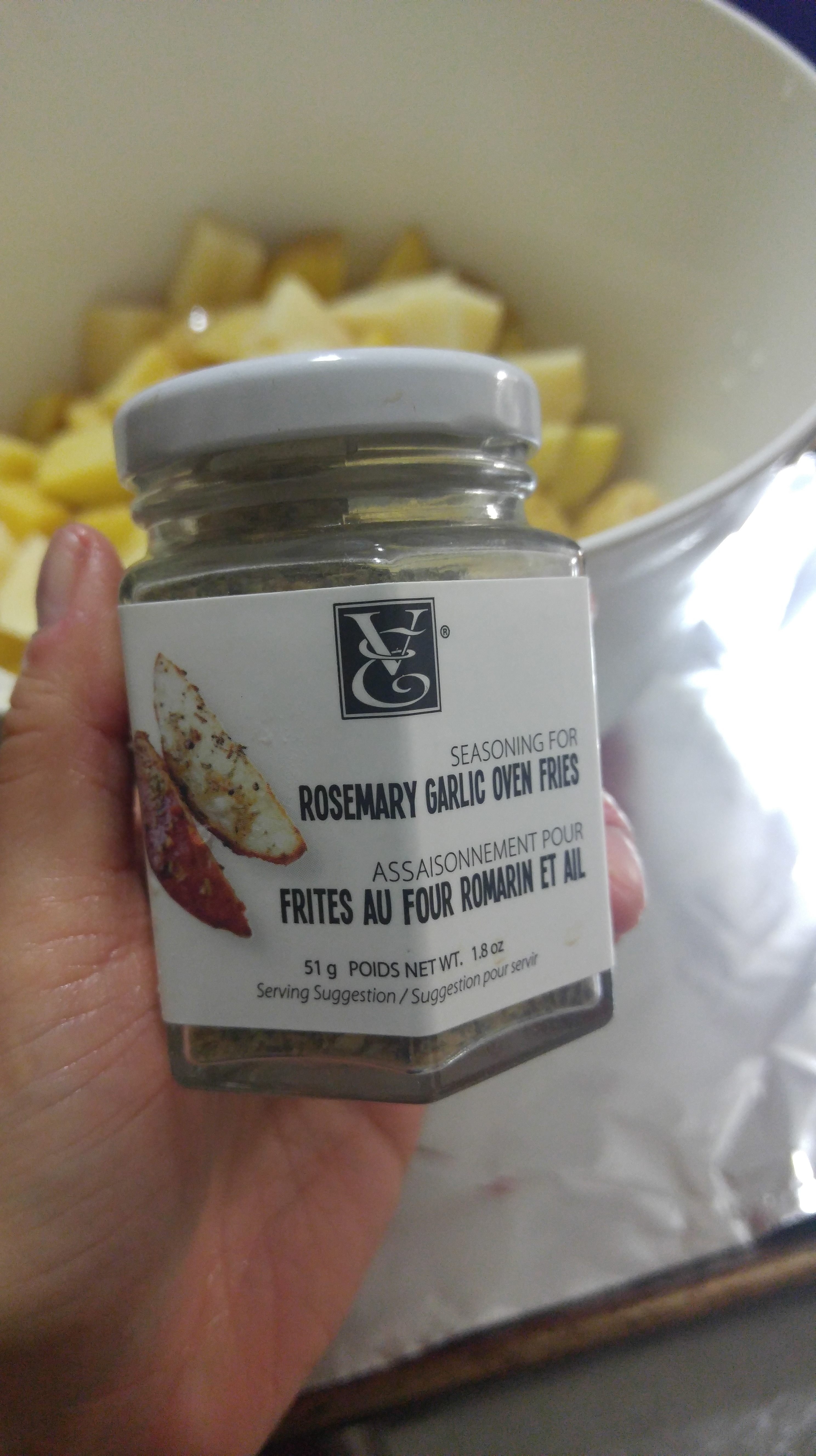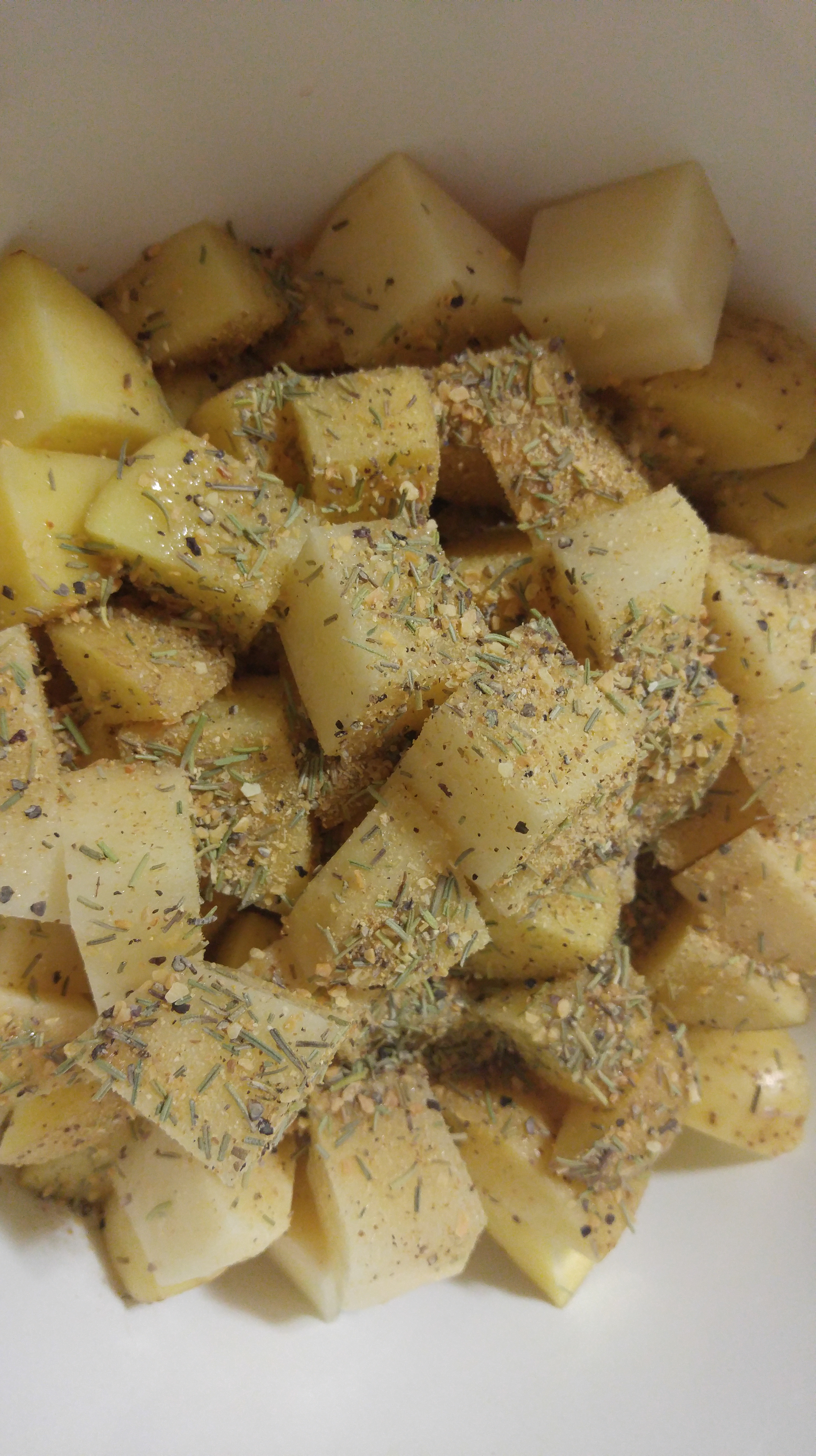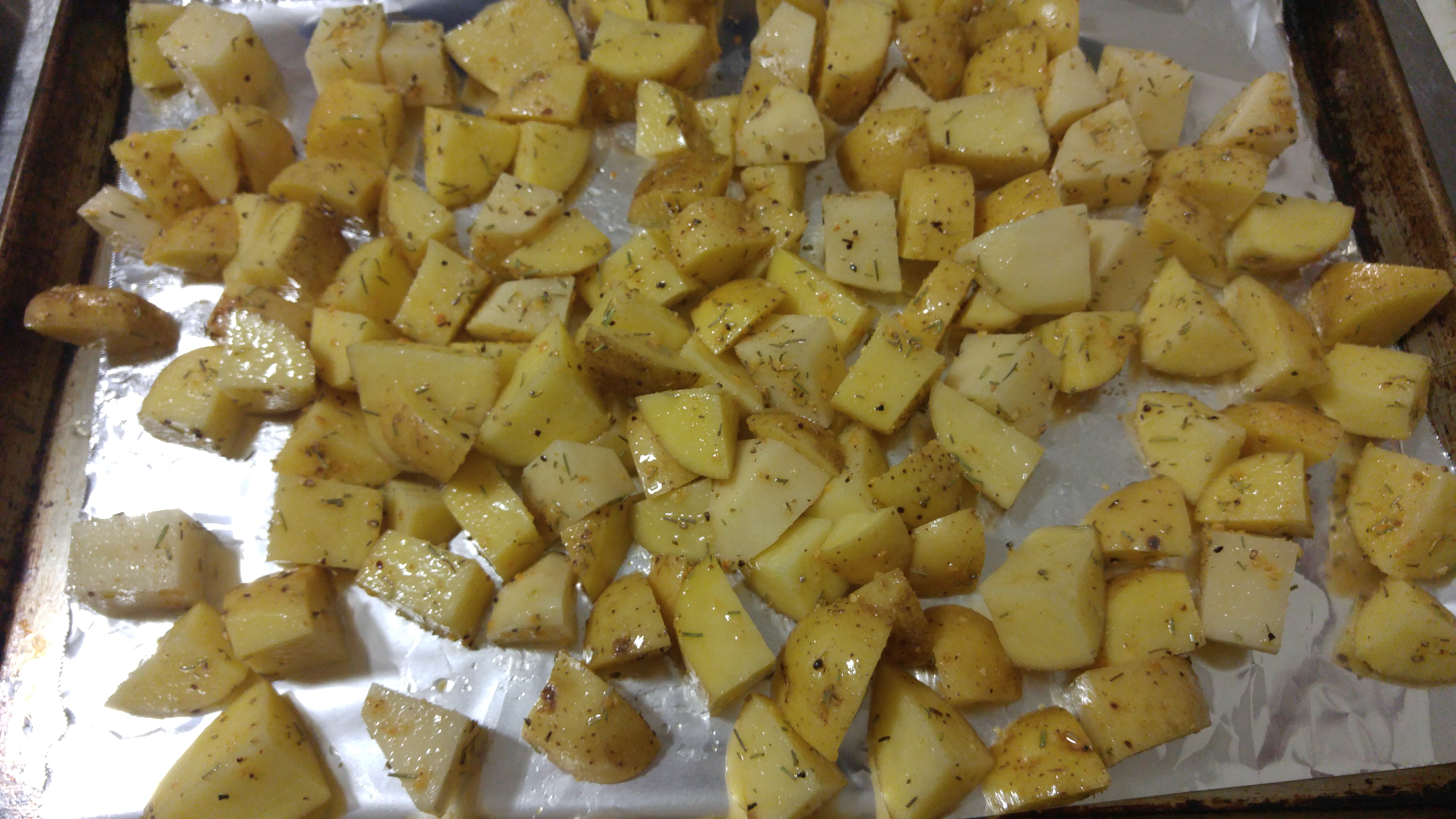 I seasoned the potatoes with some rosemary, garlic seasoning that my aunt bought me.