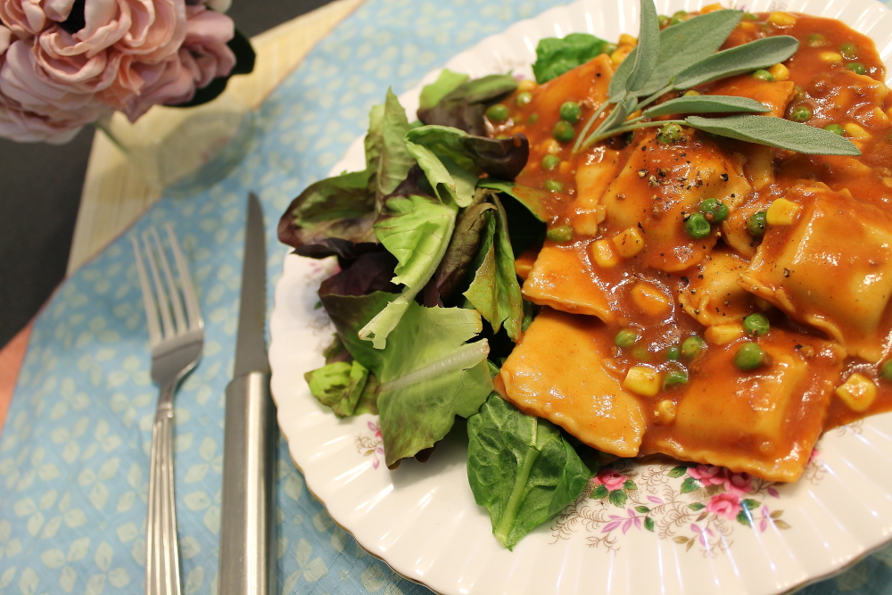 For presentation add some leftover salad and find some herbs in the community garden. Voila! A beautiful gourmet version of the simple can of Chef Boyardee. This will impress any of your friends. They won’t know that this came from a can!