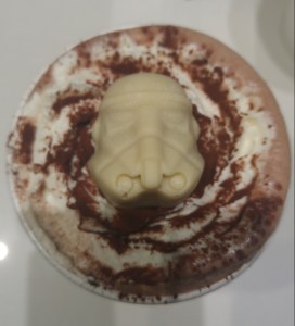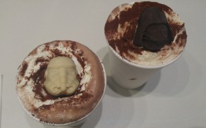 The next stop was Gem Chocolates. They had 4 different flavours. Each flavour was featured for one week of the Hot Chocolate Festival. This week’s flavour was called “Give Yourself to the Dark Side”. An appropriately named hot chocolate since it was an extra dark hot chocolate served with a dark chocolate Darth Vader mask or white chocolate Storm Trooper mask. The hot chocolate was warm not hot when we got it. It was a decent hot chocolate but I was expecting something a lot creamier and rich. The only perk was the Darth Vader mask and the Storm Trooper mask. Who would not like these! Looking at the cases of chocolates, I would come back to try the chocolates another time.