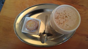 I wanted to try a dairy-free version of the “Before 9” with almond milk. This was a peppermint hot chocolate served with a rice crispy square. I really hoped the hot chocolate was creamy and rich but to my disappointment it wasn’t. To be fair, almond milk does not do justice as it does not have the high fat content as milk does. I was not extremely thrilled with my drink as it was an ordinary hot chocolate with a rice crispy square.