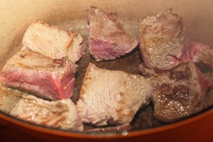 To substitute the beef ribs, I used a beef roast. I wanted big chunky pieces. Season the beef chunks with some salt and pepper and sear the meat in a tablespoon of oil.