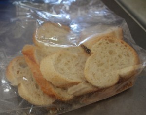The other day I was helping to host a party and I made some bruschetta and had tonnes of extra bread. We had to eat it now or eat it later. Well we saved it for later. We toasted and stored them in a plastic bag in the fridge.