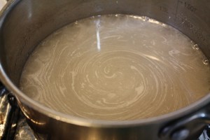 Make a simple syrup of 1 cup water and 2 cups sugar. Bring to a boil.