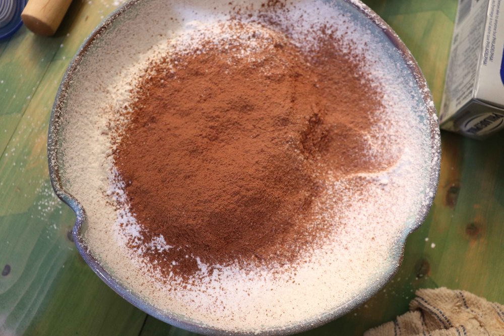Sift the flour and cocoa in a sieve. This helps break down any lumps of cocoa and prevents bitter lumps in your batter.