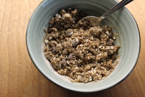 For this recipe, start by making the cookie mix. In a large bowl mix together all the ingredients. In the picture I wanted to add some vanilla to my mix, but it didn’t work out and just got clumpy. So maybe add some vanilla sugar if you want some oomph.