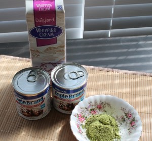 The 3 ingredients for this recipe are whipping cream, condensed milk and matcha powder.