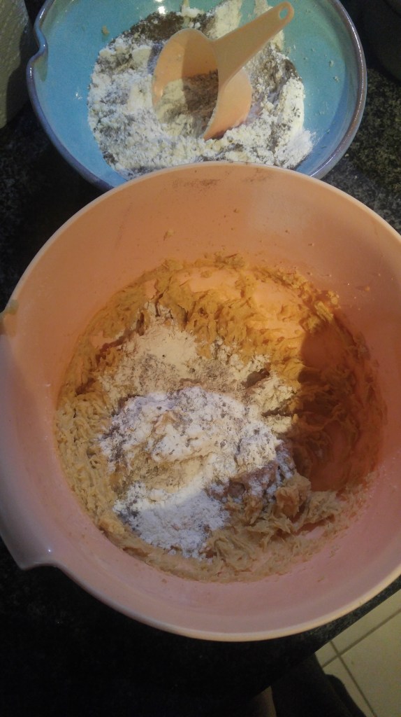 This recipe is a great way to get people to try insect protein! Insect protein is a great substitute for protein powders. It is also full of vitamins and minerals so adding a scoop into your regular recipes will add extra nutrients to your diet. Start by measuring the dry ingredients.