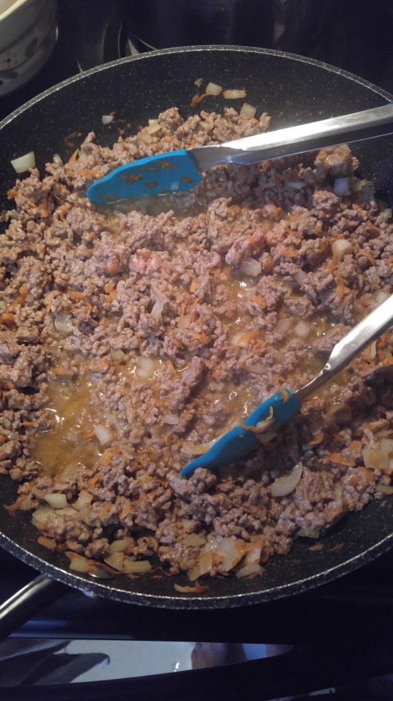 For the filling I used 1/2 grated carrot, a handful of cilantro chopped coarsely, 1 lb of beef, half a medium onion diced and some chopped up swiss chard.