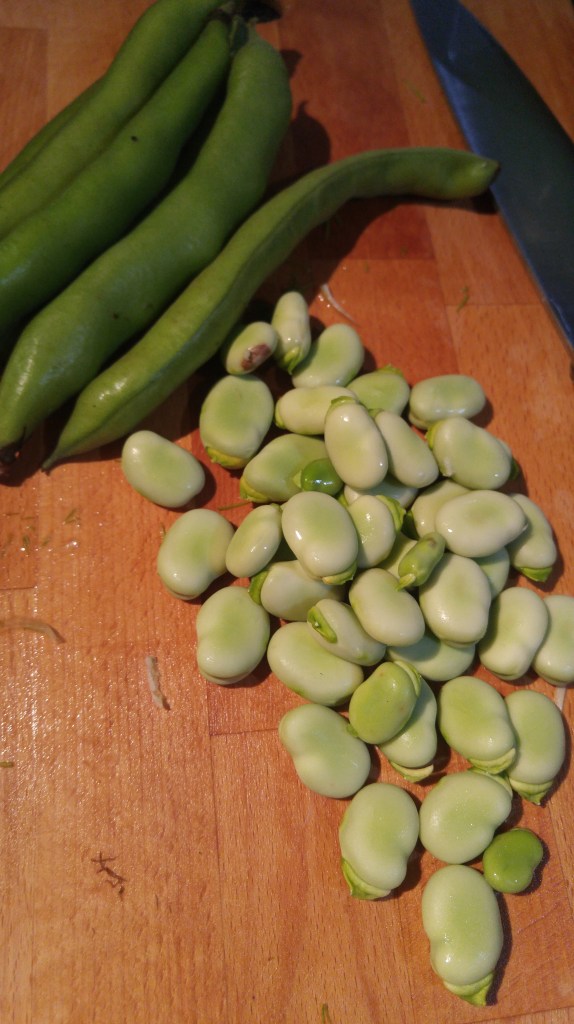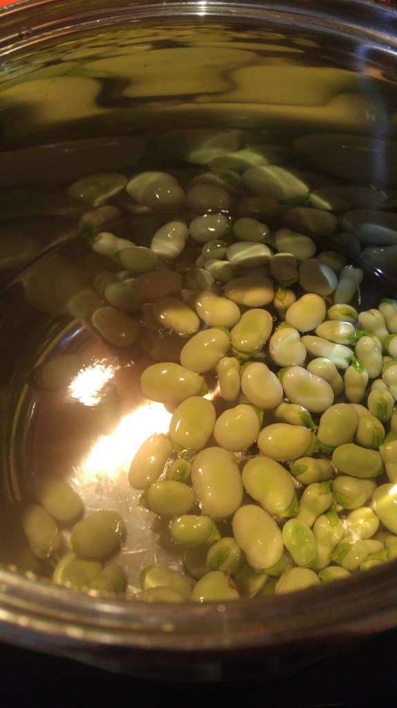 Then take the fava beans and blanch them in boiling water for 3-4 minutes. Don’t leave them in too long or you get mushy beans.