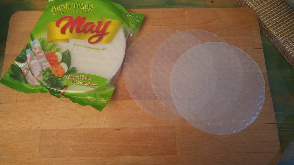 First you will need to get some rice wraps. You can find these in Asian supermarkets or the International section of a grocery store.