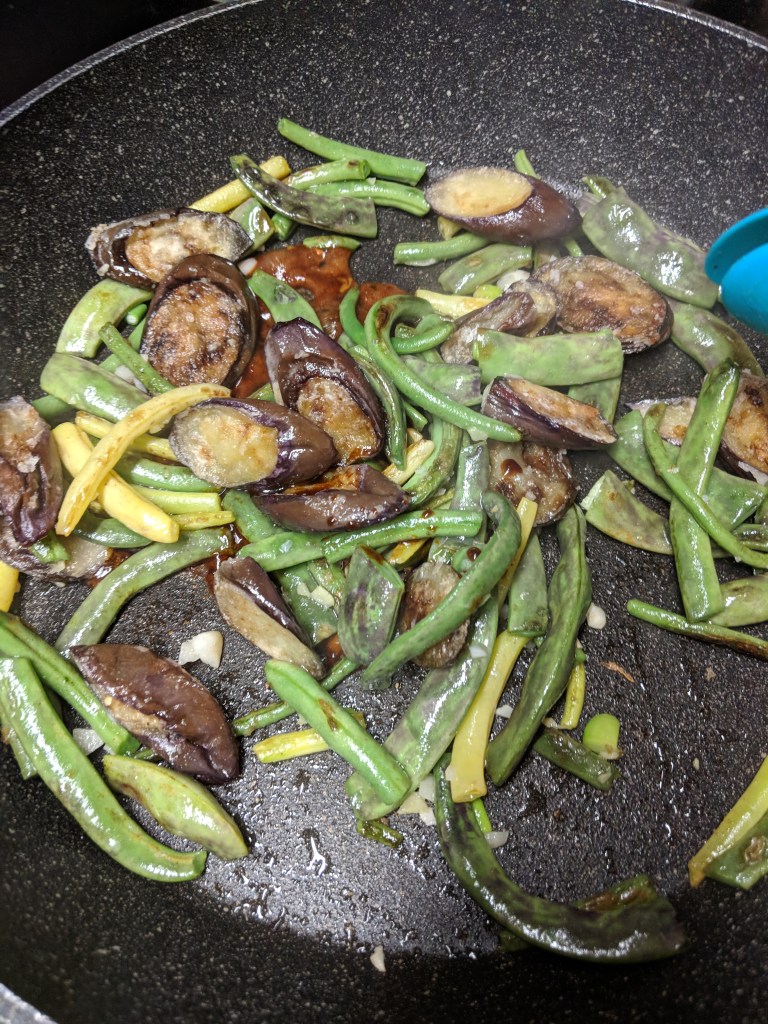 I also added some long green beans to this dish. Simply cut the beans in 2 inch long pieces.