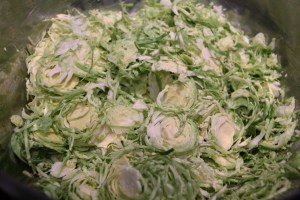 Use a food processor with the slicing attachment to shred the Brussels sprouts finely.