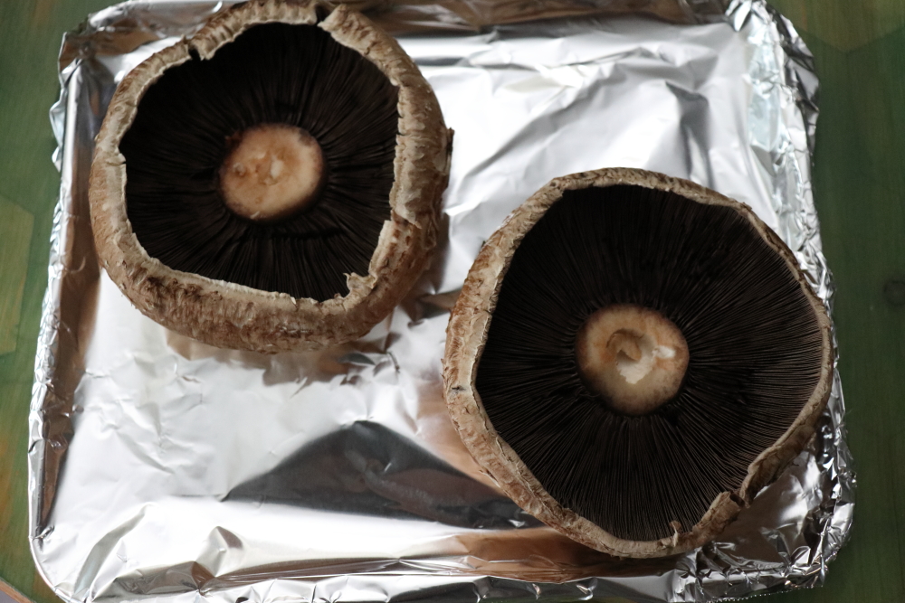 For this recipe, I used portobello mushrooms but any mushroom caps will work. Remove the stems on the mushrooms.