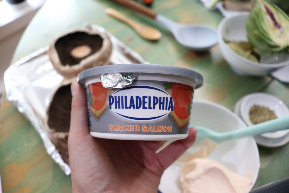 I wanted the mushrooms to be loaded with smoked salmon flavours so I bought a smoked salmon cream cheese.